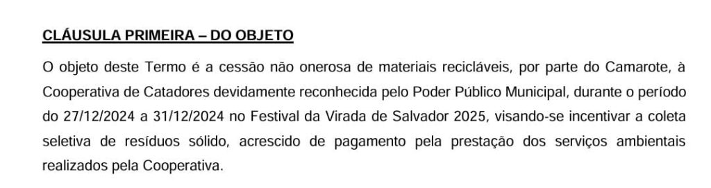 A Cooperativa de Reciclagem União Nazaré (CRUN), tem sido protagonista, na transformação ambiental, no camarote da “Arena O Canto da Cidade”, na orla da Boca do Rio, para gerenciar os resíduos gerados durante o Festival Virada Salvador 2025.